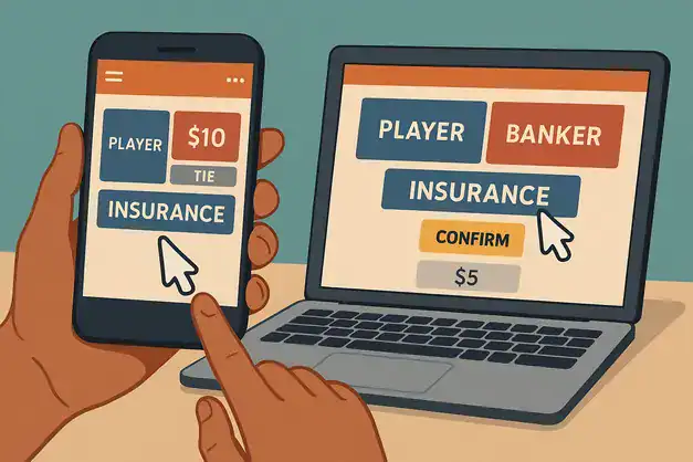 ในเกมบาคาร่าประกันภัย ตัวเลือกในการซื้อตัวเลือกประกันจะถูกเปิดให้กับผู้เล่นในช่วงเวลาหลังจากที่ได้ทำการวางเดิมพันเรียบร้อยแล้ว แต่ก่อนที่จะมีการเปิดไพ่ใบที่สาม ตัวเลือกนี้ออกแบบมาเพื่อให้ผู้เล่นมีโอกาสลดความเสี่ยงในกรณีที่เดิมพันหลักของพวกเขาไม่เป็นไปตามที่คาดหวัง แต่ละแพลตฟอร์มอาจมีลักษณะ UI ที่แตกต่างกัน ซึ่งทำให้นักพนันต้องปรับตัวให้เข้ากับคำศัพท์และการใช้งานที่แตกต่างกัน เช่น ใน UFABET และ Mammoth88 อาจนำเสนอข้อมูลและคำแนะนำในรูปแบบที่ไม่เหมือนกัน การทำความเข้าใจวิธีการใช้งานระบบประกันภัยในเกมบาคาร่าแต่ละแพลตฟอร์มจึงเป็นสิ่งจำเป็นเพื่อเพิ่มโอกาสในการชนะ ความแตกต่างเหล่านี้รวมถึงการตั้งค่าปุ่มซื้อประกัน การแสดงผลจะแตกต่างกันทั้งด้านสีสัน รูปแบบ และการวางตำแหน่งบนหน้าจอ ซึ่งอ่านง่ายและช่วยในการตัดสินใจอย่างรวดเร็วและแม่นยำ